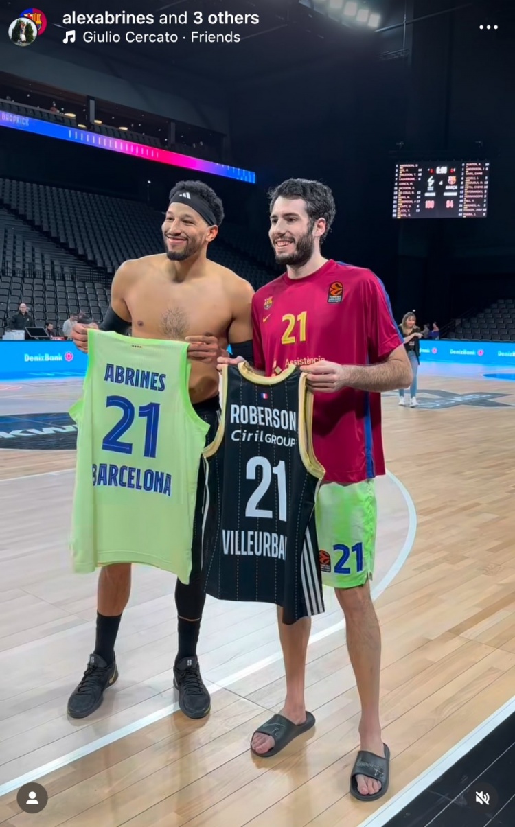 賽后,目前效力于巴薩男籃的阿布里內(nèi)斯和效力于ASVEL里昂維倫班男籃的羅伯森交換了各自的球衣。