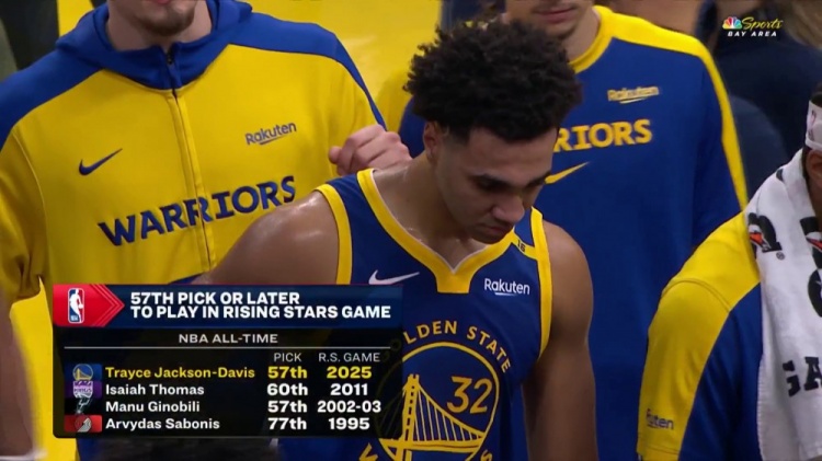 比賽中轉(zhuǎn)播方曬出一組數(shù)據(jù),NBA歷史上第57順位及更后的球員能打全明星新秀賽的有以下4人: