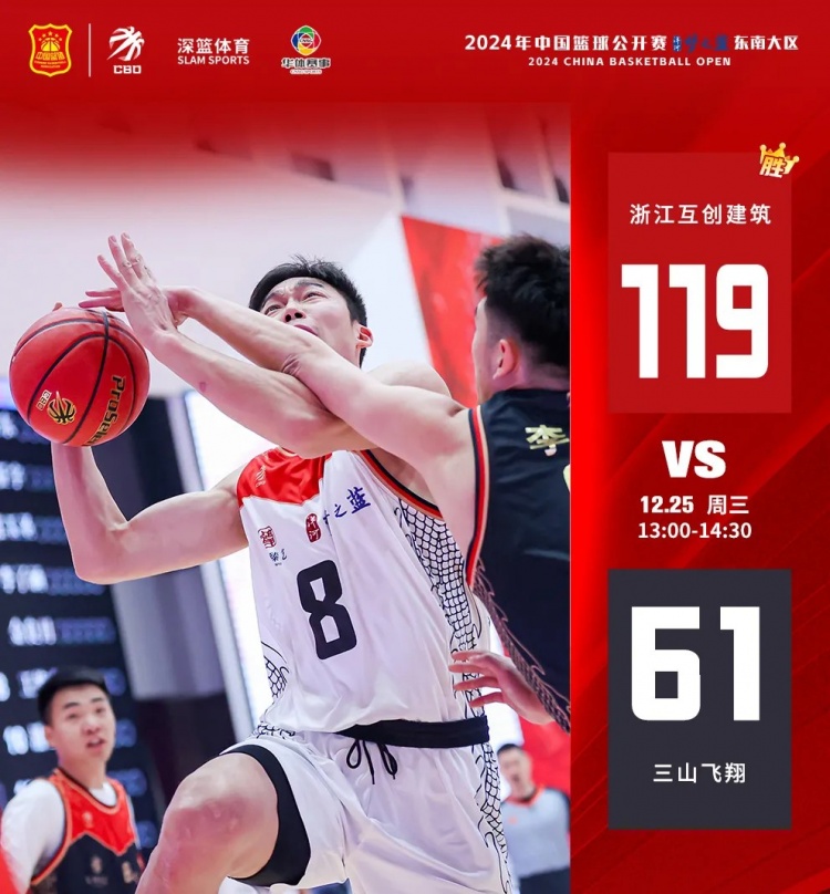 開局雙方迅速進入比賽節(jié)奏,人盯人筑起防守高墻,第二節(jié)開始高強度防守使三山飛翔體能有所下降,進攻端逐漸失準。浙江互創(chuàng)建筑抓住機會,55號陳禹歡、13號劉子豪開啟連轟模式,半場結束兩人得分均上雙,表現(xiàn)相當亮眼。下半場開始,浙江互創(chuàng)建筑攜帶15分領先優(yōu)勢,穩(wěn)扎穩(wěn)打,全隊7人得分上雙,內(nèi)突外投持續(xù)建功,最終,浙江互創(chuàng)建筑以119-61大比分拿下開門紅。
