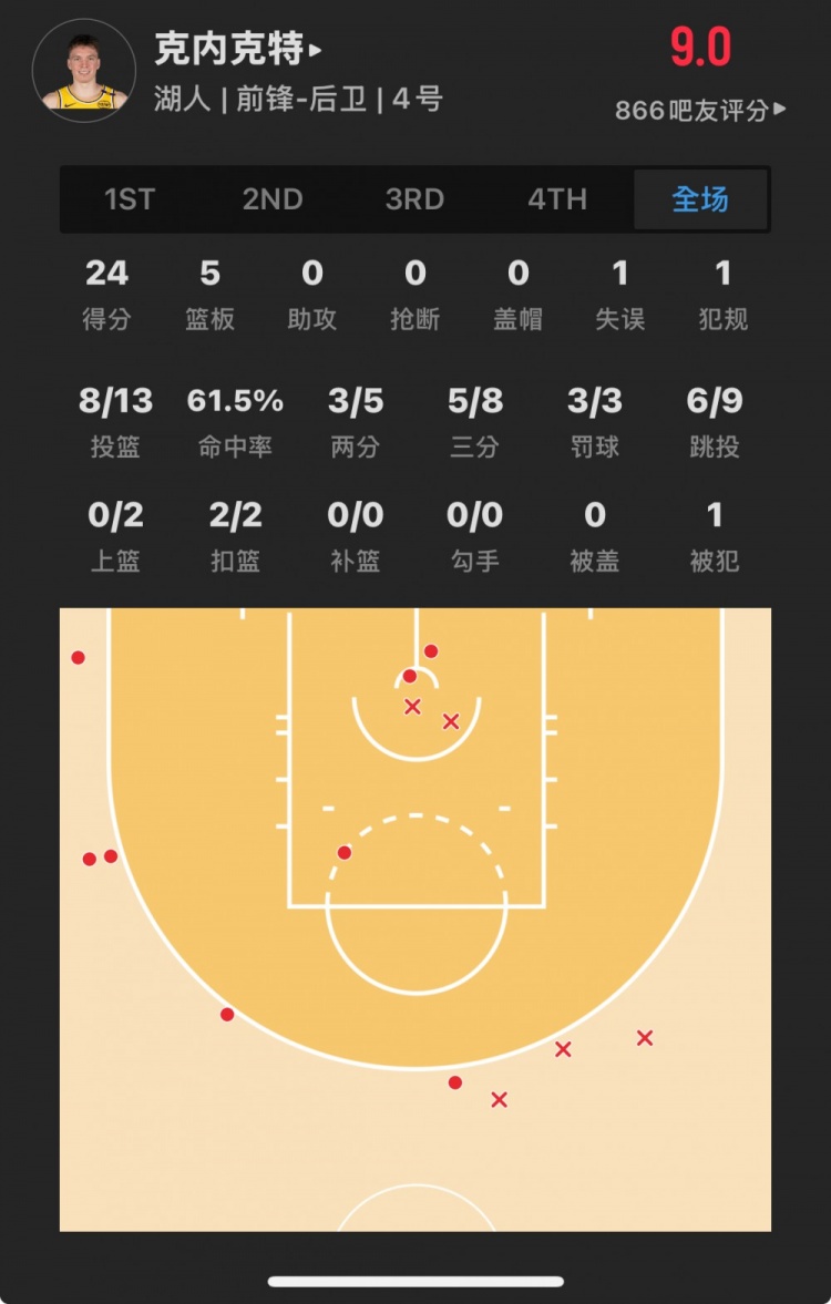 除特別注明外,本站所有內(nèi)容均為九球直播整理排版,轉(zhuǎn)載請(qǐng)注明出處:【菜鳥(niǎo)】克內(nèi)克特13中8砍24+5 布朗尼進(jìn)輪換15分鐘5投0中3失誤