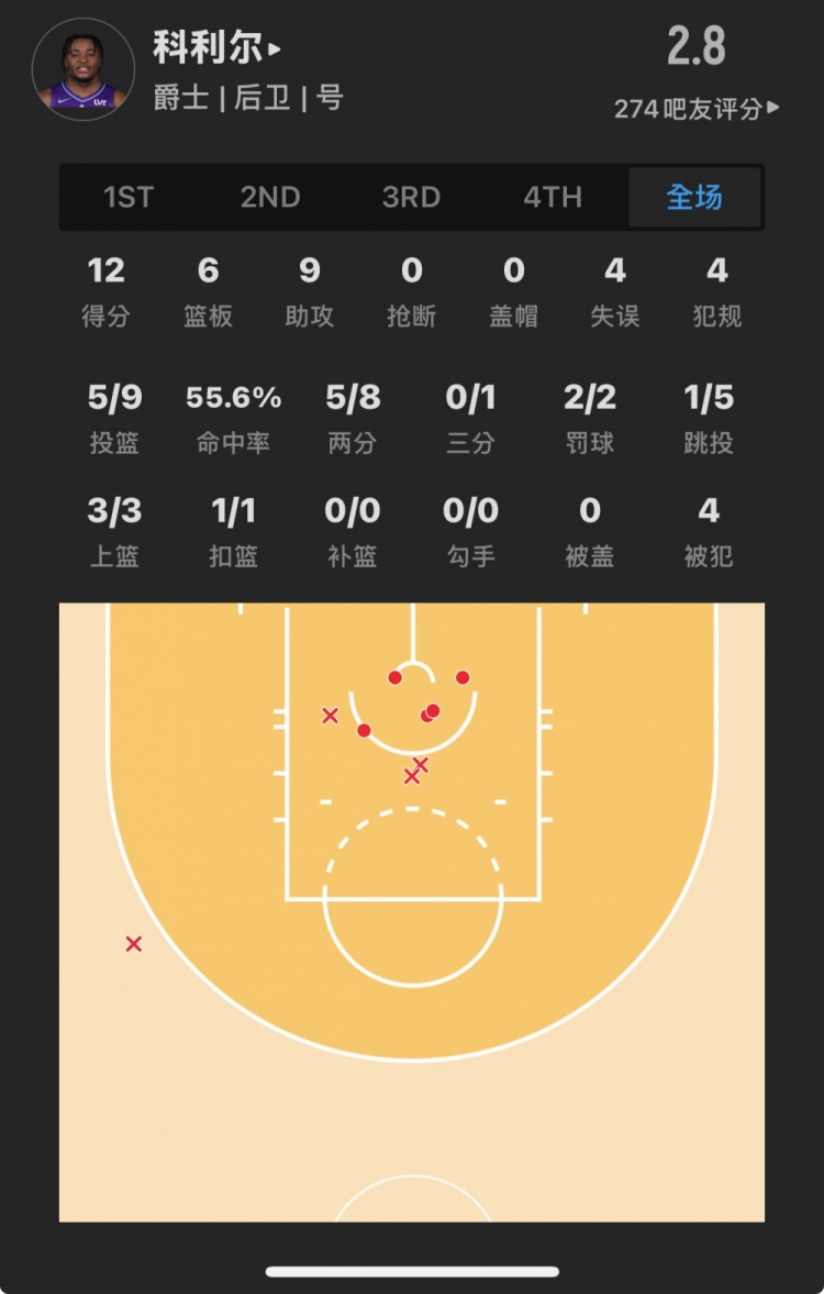 爵士29號(hào)秀 以賽亞-科利爾 登場(chǎng)32.4分鐘