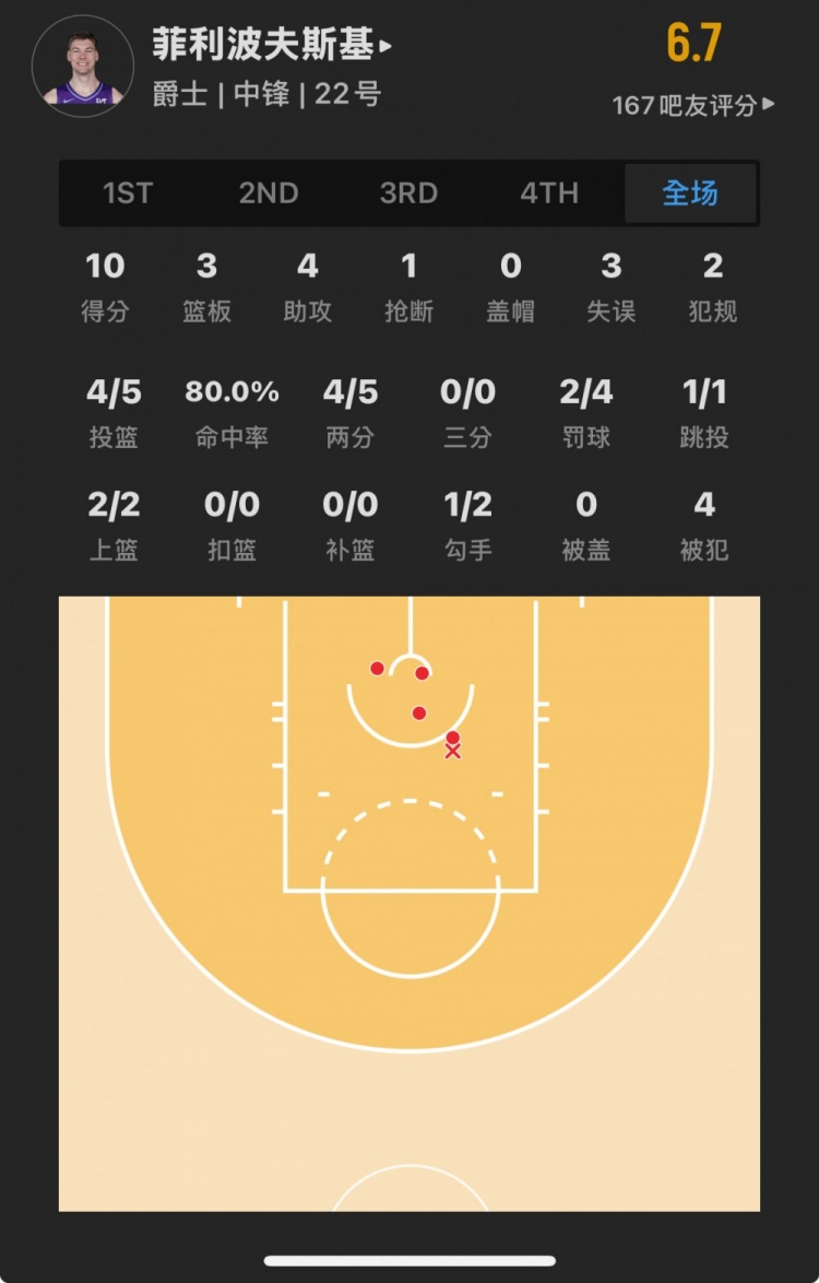 爵士32號(hào)秀 凱爾-菲利波夫斯基 登場(chǎng)19.8分鐘