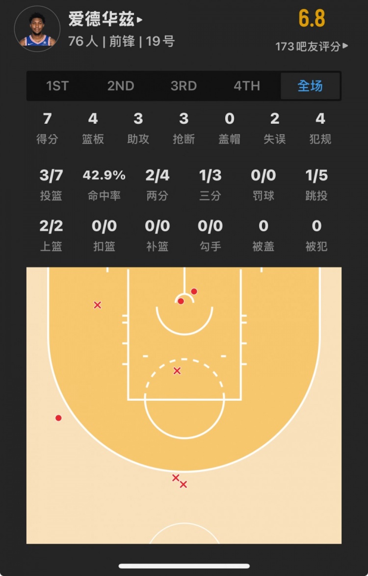76人41號(hào)秀 阿德姆-博納 登場(chǎng)19.8分鐘