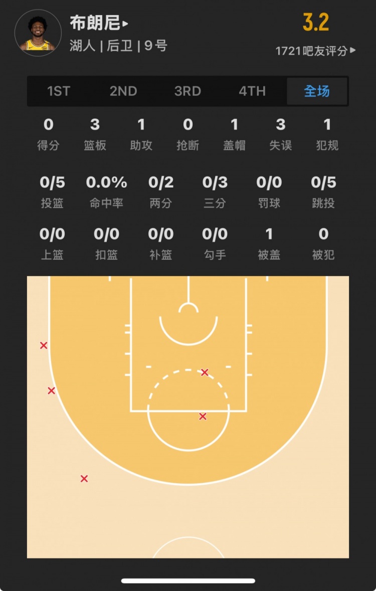 湖人55號(hào)秀 布朗尼-詹姆斯 登場(chǎng)15.4分鐘