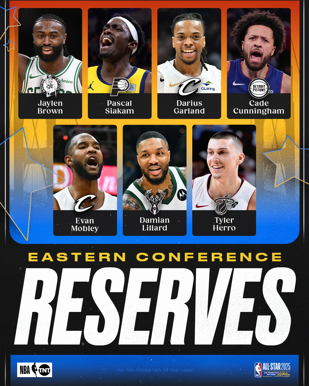 01月31日訊 NBA官方公布了2025年舊金山全明星的東部替補名單,具體如下: