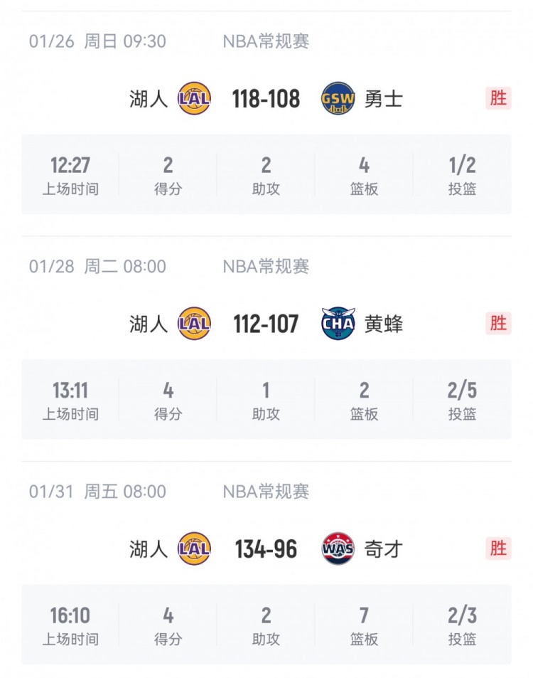至此,本賽季在范德比爾特出戰(zhàn)的比賽中,湖人戰(zhàn)績?yōu)?勝0負(fù)。