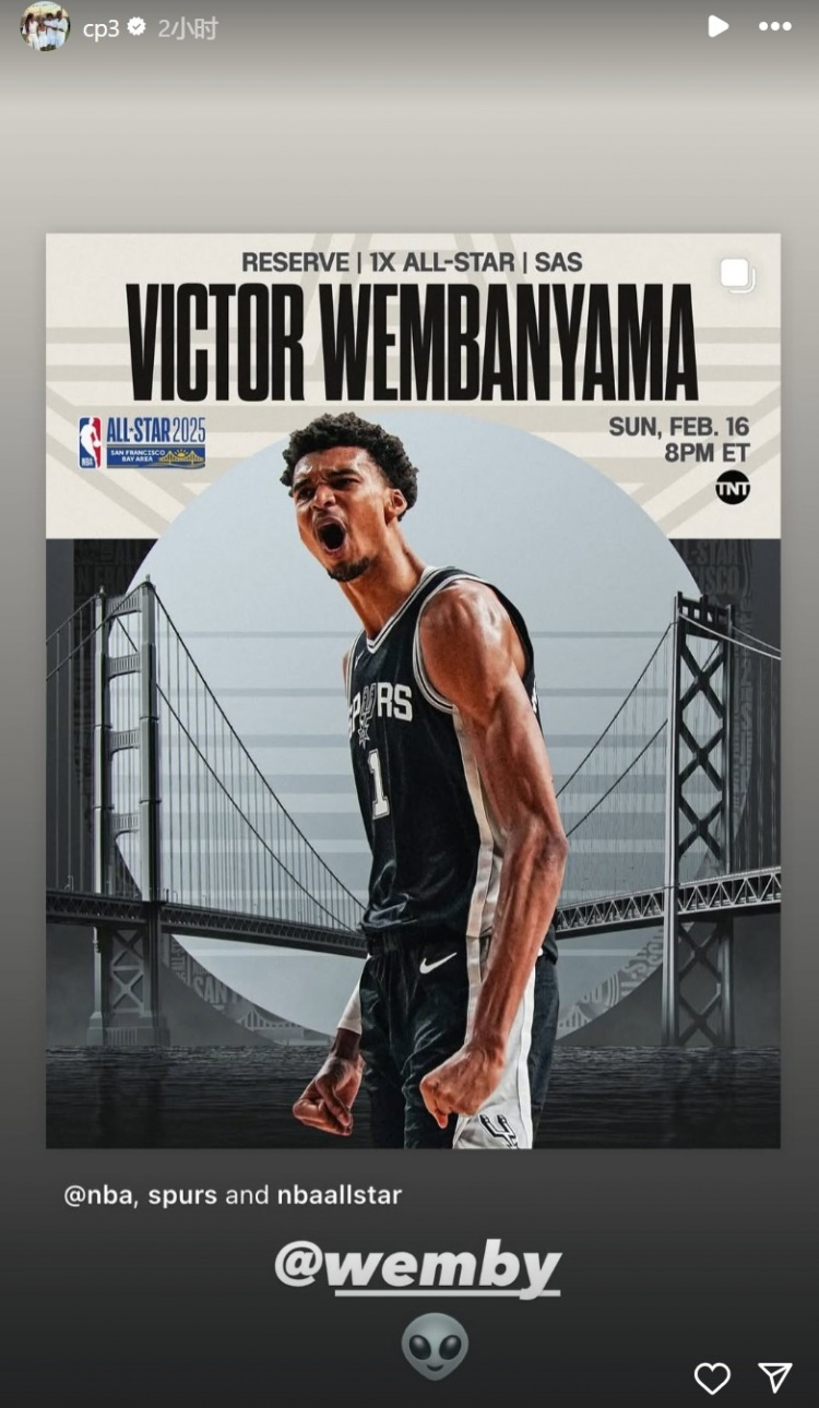 發(fā)布時(shí)間:2025年01月31日 15:05點(diǎn)擊:欄目:籃球新聞 1月31日訊 NBA官方今日公布了2025舊金山全明星的替補(bǔ)陣容,文班亞馬入選西部全明星替補(bǔ)。馬刺老將克里斯-保羅轉(zhuǎn)發(fā)報(bào)道,并配文:“文班亞馬, 除特別注明外,本站所有內(nèi)容均為九球直播整理排版,轉(zhuǎn)載請(qǐng)注明出處:文班亞馬生涯首次進(jìn)全明星!保羅送祝福: 本文標(biāo)簽: nba 籃球 馬刺 保羅 文班亞馬