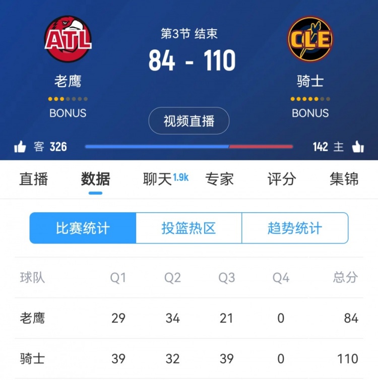 發(fā)布時(shí)間:2025年01月31日 15:20點(diǎn)擊:欄目:籃球新聞 1月31日訊 NBA常規(guī)賽,騎士三節(jié)110-84領(lǐng)先老鷹。第三節(jié),騎士攻防兩端壓制對(duì)手,單節(jié)39-21凈勝18分,三節(jié)打完騎士獲得26分的巨大優(yōu)勢(shì)。米切爾和加蘭三節(jié)各自拿到22分。 除特別注明外,本站所有內(nèi)容均為九球直播整理排版,轉(zhuǎn)載請(qǐng)注明出處:攻防壓制!騎士第三節(jié)39-21凈勝老鷹18分 三節(jié)打完領(lǐng)先26分 本文標(biāo)簽: nba 籃球 騎士 米切爾