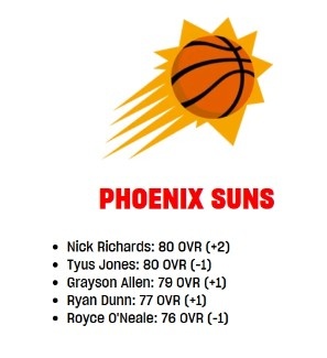 1月31日訊 NBA2K本周更新,太陽隊內(nèi)球員的能力值有所變化,新援理查茲由78上漲至80。