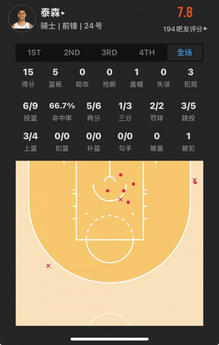 騎士20號秀 杰倫-泰森 登場16.8分鐘