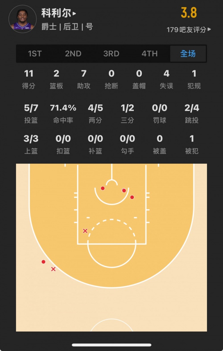 爵士29號秀 以賽亞-科利爾 登場30.0分鐘
