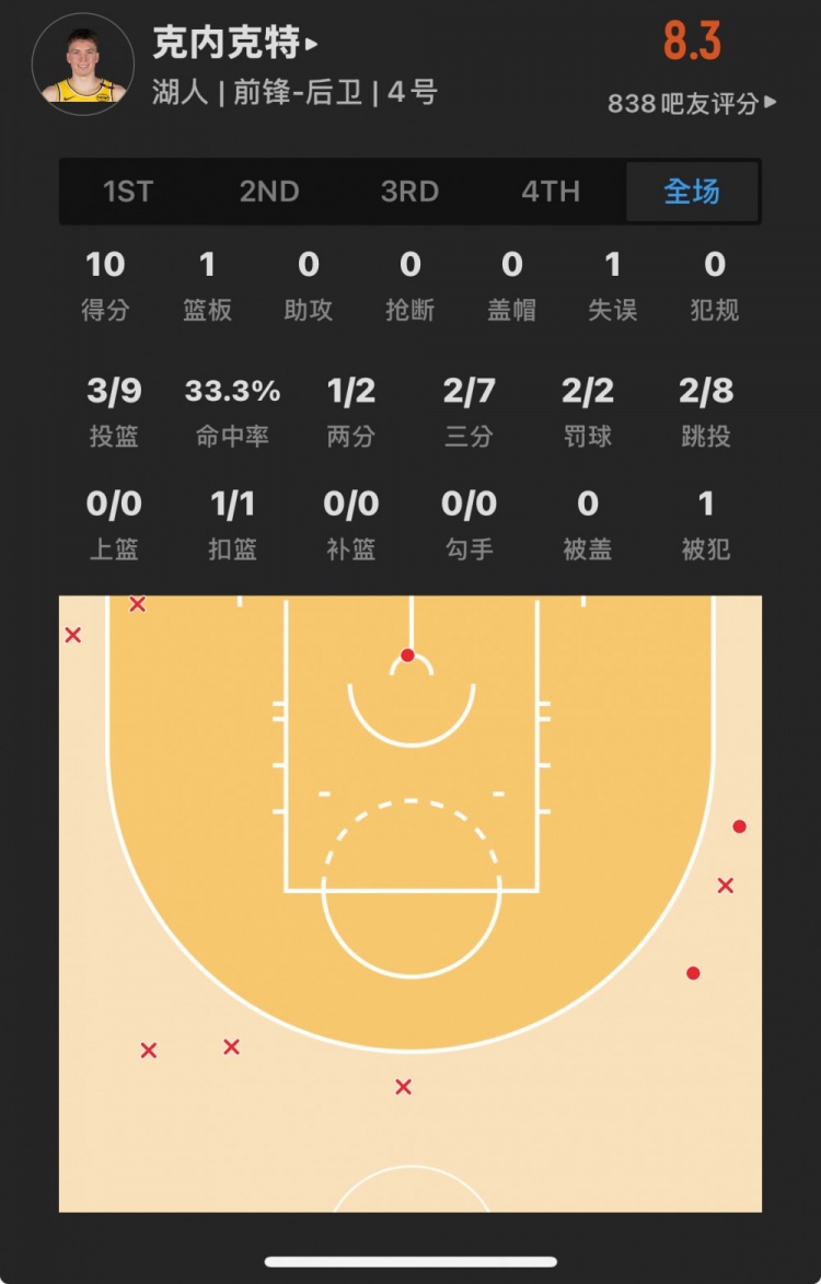 湖人17號秀 道爾頓-克內克特 登場22.2分鐘