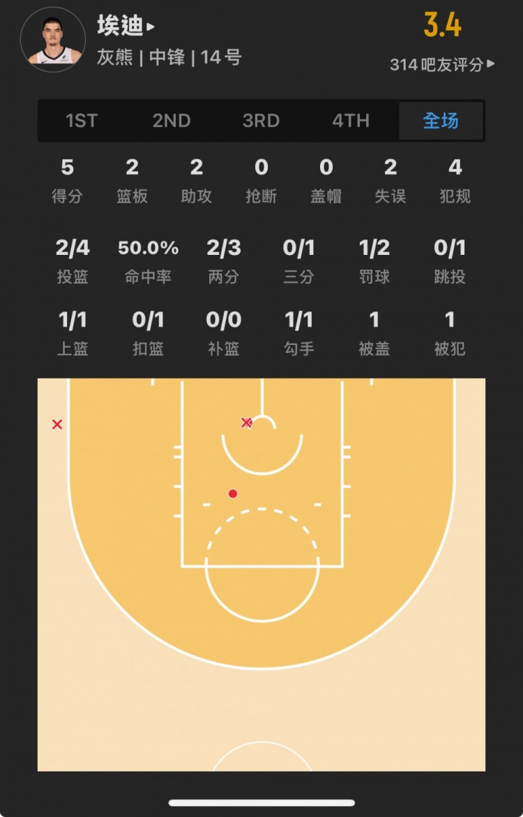 灰熊9號秀 扎克-埃迪 登場17.3分鐘
