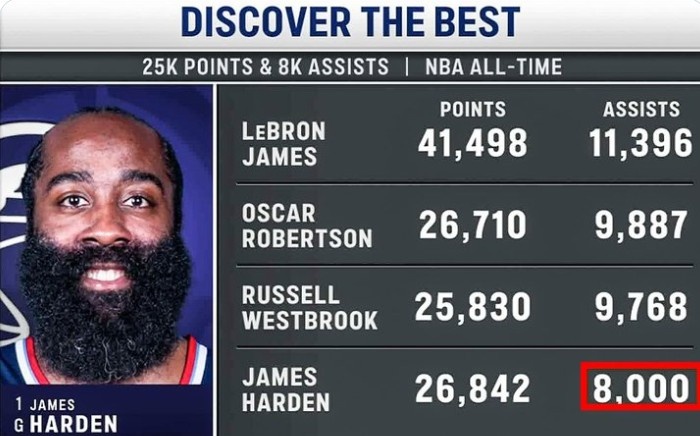 發(fā)布時(shí)間:2025年02月01日 10:41點(diǎn)擊:欄目:籃球新聞 除特別注明外,本站所有內(nèi)容均為九球直播整理排版,轉(zhuǎn)載請(qǐng)注明出處:哈登得分25000+且助攻8000+ 歷史第4人&比肩老詹大O威少 本文標(biāo)簽: nba 籃球 西部 快船 哈登 詹姆斯 威少