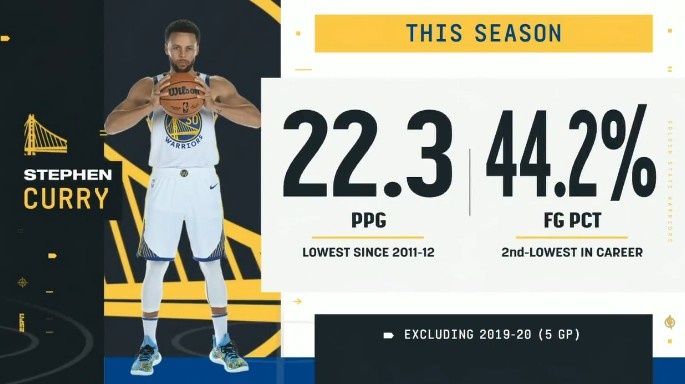 庫里場均22.3分11-12賽季以來最低 命中率44.2%生涯第二低