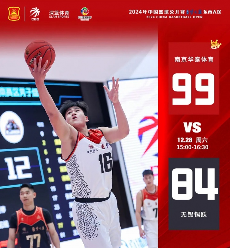 比賽開場(chǎng),無錫錫躍迅速進(jìn)入比賽狀態(tài),2號(hào)康晶晶與9號(hào)施濱楠手感火熱,開場(chǎng)連續(xù)進(jìn)攻得手拉開比分。南京華泰體育則較為慢熱,幾個(gè)回合后逐漸打開狀態(tài),7號(hào)張政再次率隊(duì)發(fā)起進(jìn)攻,6號(hào)孫旭內(nèi)線實(shí)力超群,更有快攻送上,比賽相當(dāng)精彩。下半場(chǎng)比賽開始,攜帶12分優(yōu)勢(shì)的南京華泰體育進(jìn)攻效率不減,無錫錫躍全力抵擋,14號(hào)徐明兵拿到個(gè)人四次犯規(guī),0號(hào)徐中偉也陷入犯規(guī)困境。比賽后程,南京華泰體育5人得分上雙,將分差再次擴(kuò)大,最終南京華泰體育99-84戰(zhàn)勝無錫錫躍。