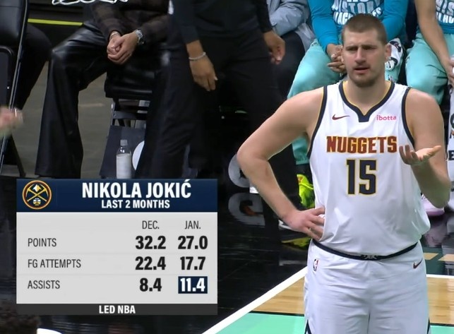 高效全面約基奇12月場均32.2分8.4助 1月場均27分11.4助