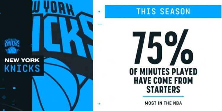 賽前轉(zhuǎn)播方曬出數(shù)據(jù),尼克斯本賽季75%時間是首發(fā)打的,這一數(shù)據(jù)排名聯(lián)盟第一。