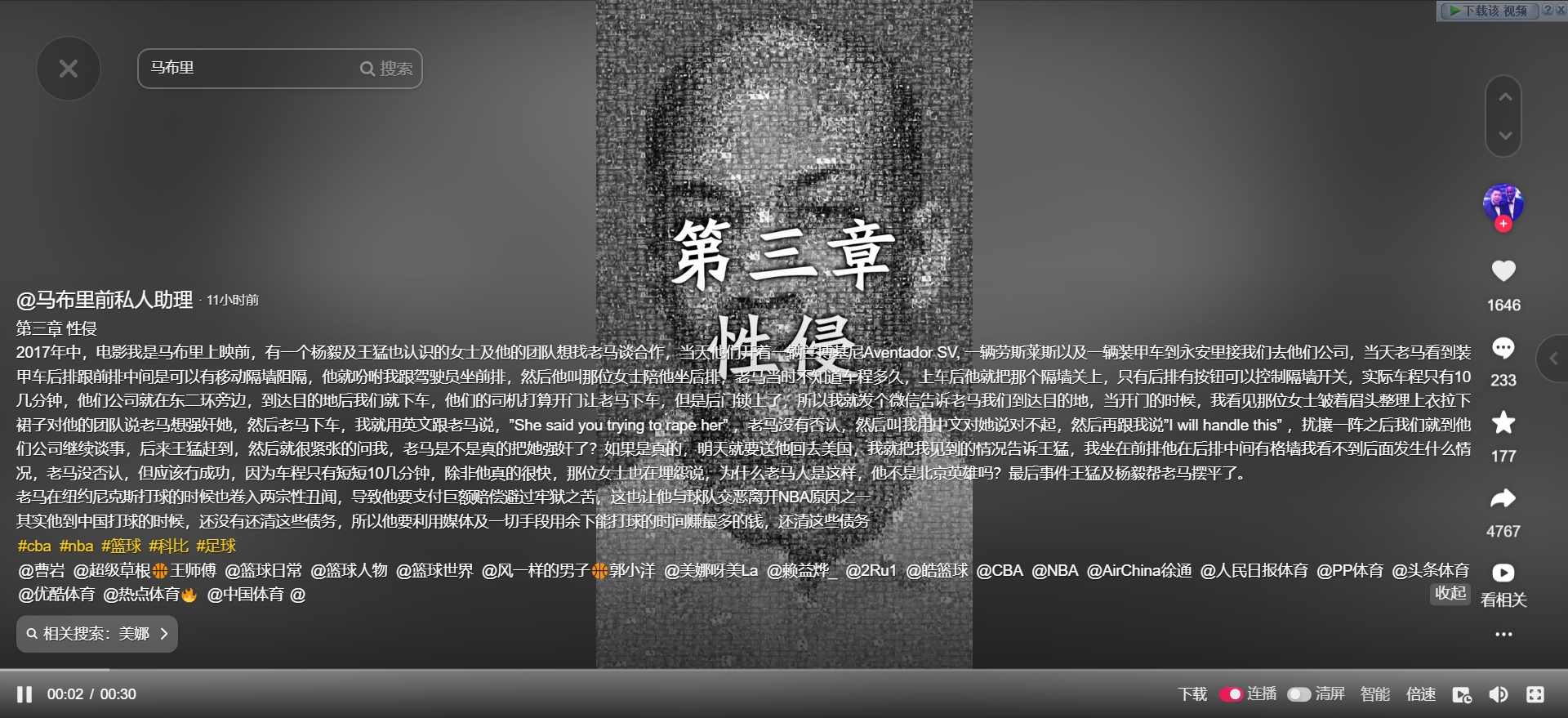 02月02日訊 近日,一個自稱是馬布里前私人助理的賬號在國內(nèi)社交媒體連續(xù)爆料,稱馬布里的成名真相會是體育史上最大的丑聞。