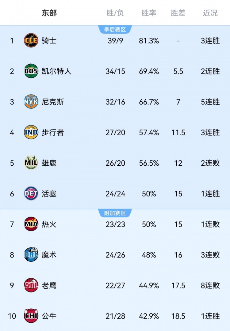 至此,步行者戰(zhàn)績(jī)來到了27勝20負(fù),近13場(chǎng)11勝。他們排名也超過了雄鹿升至東部第四。