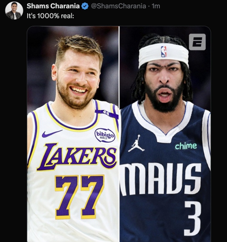 - 宇宙級(jí)重磅交易:湖人得到東契奇!送濃眉去獨(dú)行俠!