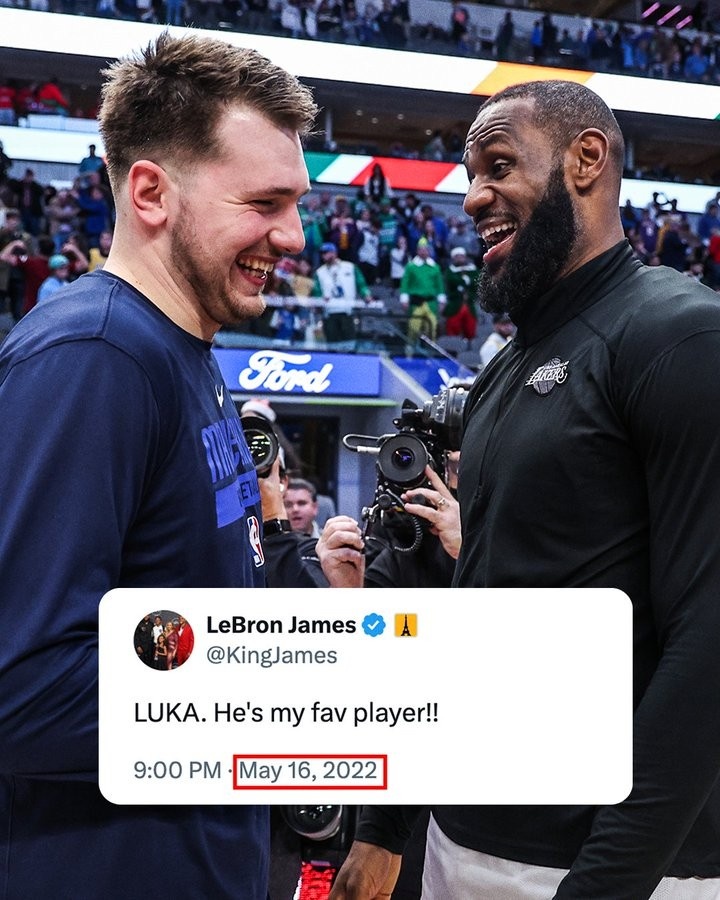 - 聯(lián)手了!詹姆斯曾在22年更推:盧卡 他是我最喜歡的球員!!