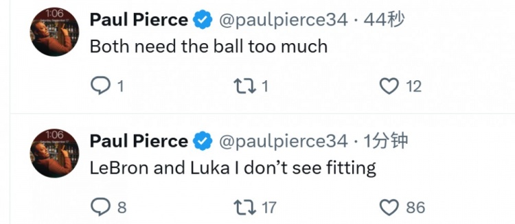 名宿皮爾斯發(fā)推寫(xiě)道:“我認(rèn)為詹姆斯和東契奇不合適,他倆都需要大量持球。”