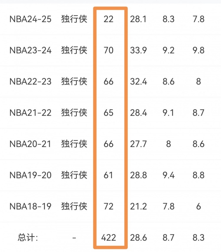 - 獨(dú)行俠擔(dān)心健康?東契奇生涯單賽季至少出戰(zhàn)61場 平均每季67場