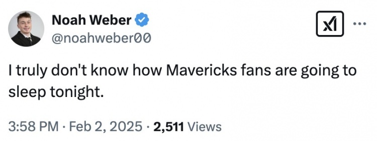 對(duì)此,獨(dú)行俠隨隊(duì)記者Noah Weber表示:“我真的不知道獨(dú)行俠球迷今晚該怎么睡覺?!?/p>