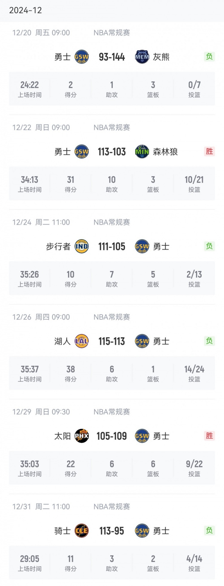 發(fā)布時(shí)間:2024年12月31日 19:17點(diǎn)擊:欄目:籃球新聞 除特別注明外,本站所有內(nèi)容均為九球直播整理排版,轉(zhuǎn)載請注明出處:冰火兩重天!庫里近6戰(zhàn)拿過2分/10分/11分?? 也有31分/38分 本文標(biāo)簽: 籃球 nba 勇士 庫里