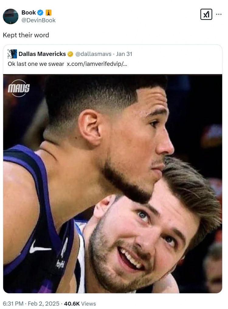 - 獨(dú)行俠官方昨天說最后一次用東契奇凝望照!布克回懟:挺遵守諾言