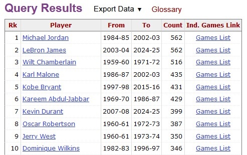 30+榜,詹姆斯今天正式超越喬丹,563場(chǎng)獨(dú)霸榜首:
