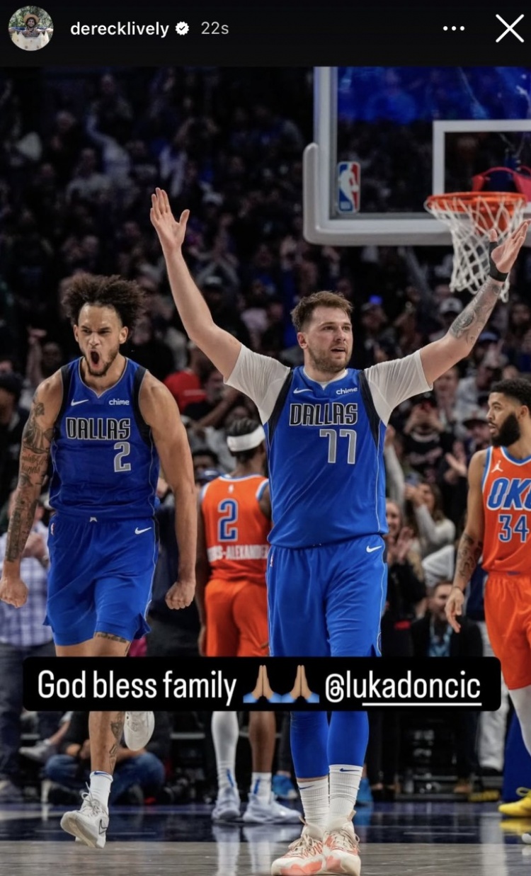 對此,獨(dú)行俠中鋒萊夫利發(fā)INS祝福東契奇:“愿上帝保佑家人@東契奇”