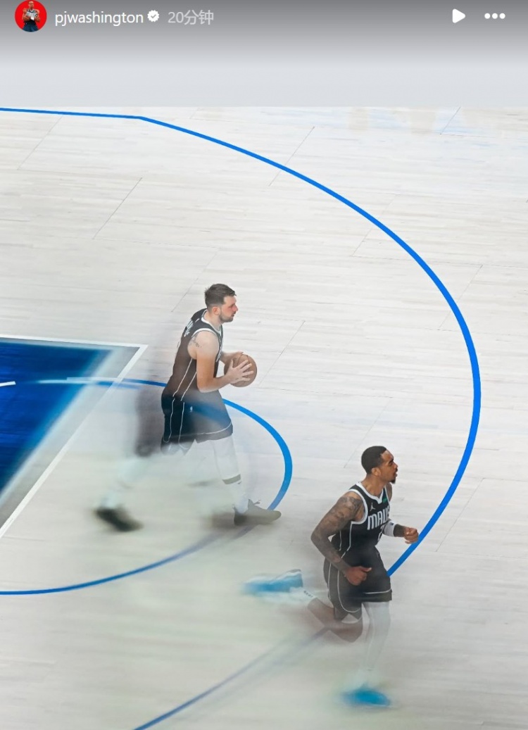 今天,獨行俠前鋒PJ-華盛頓在INS轉(zhuǎn)發(fā)了自己和東契奇的同框照。