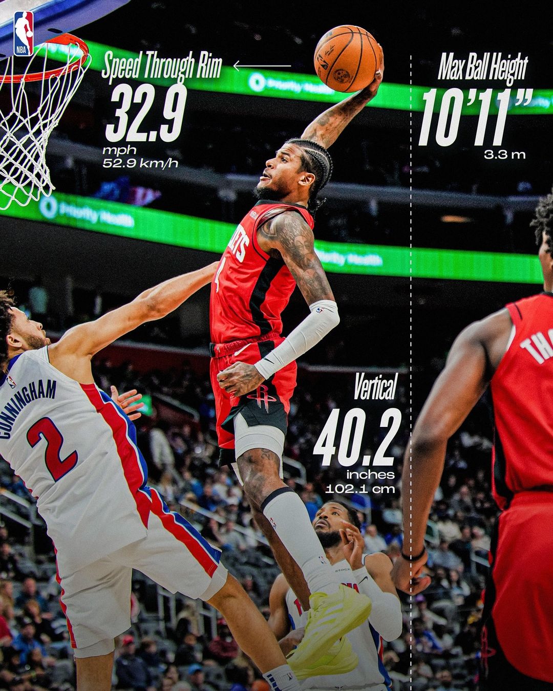 2、同屆榜眼扣狀元!杰倫-格林反擊起飛,單臂拉滿弓隔扣康寧漢姆。