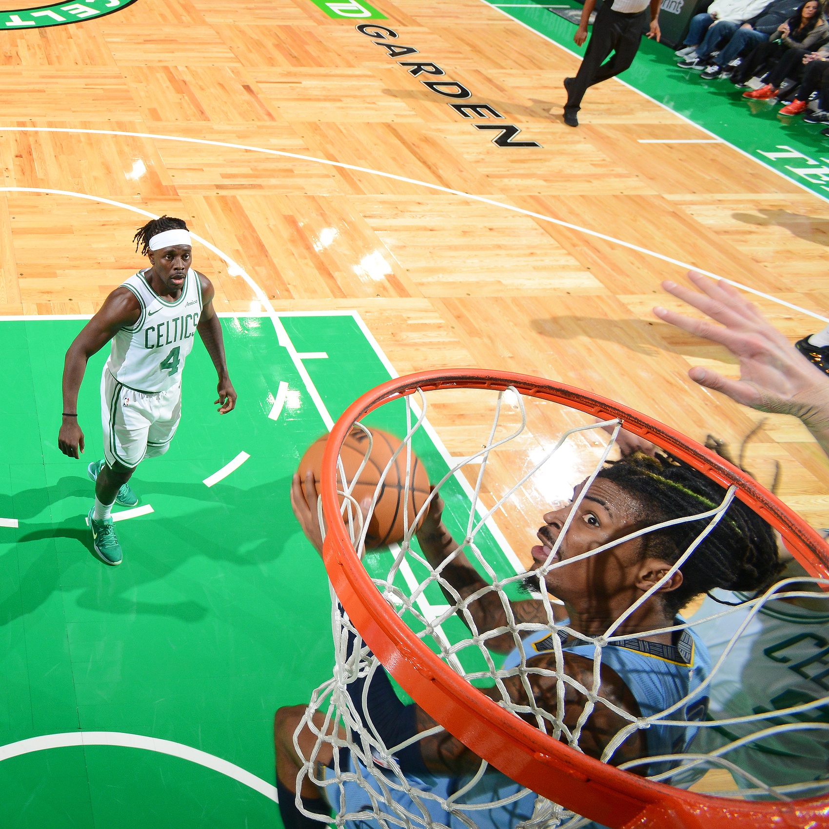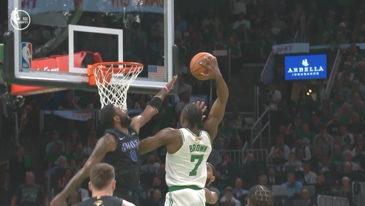 7、杰倫-布朗交叉步過掉東契奇,迎著歐文和加福德上演戰(zhàn)斧隔扣。