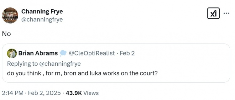 詹姆斯的前隊(duì)友錢(qián)寧-弗萊回答網(wǎng)友問(wèn)答,當(dāng)被問(wèn)及勒布朗和東契奇的組合在場(chǎng)上能否奏效時(shí),他的回答是不能。