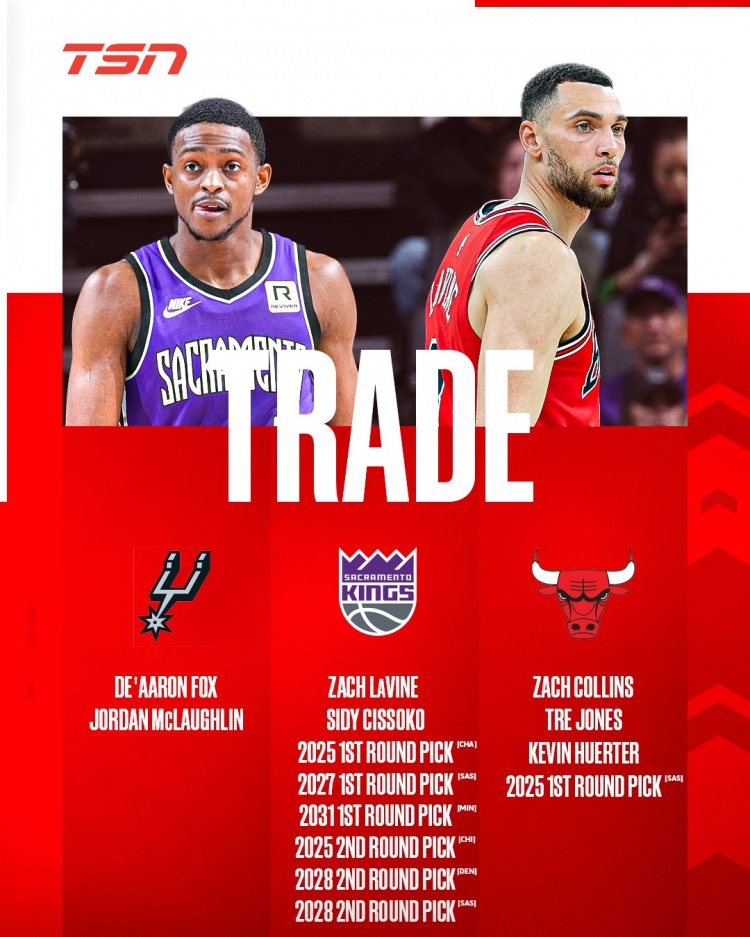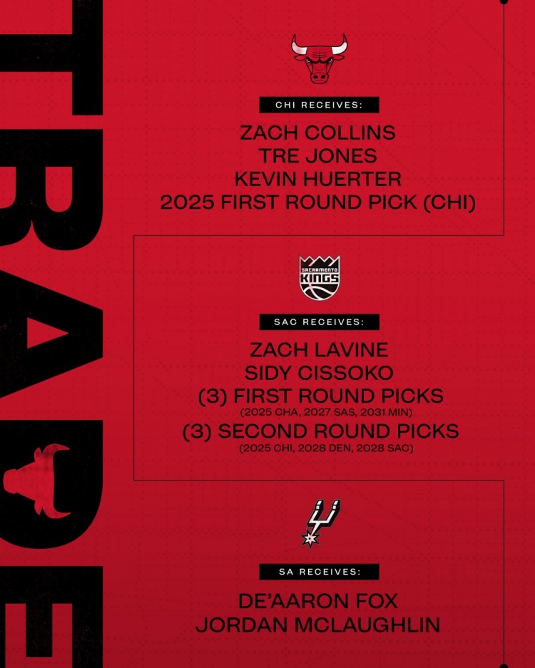 發(fā)布時間:2025年02月04日 04:52點擊:欄目:籃球新聞 2月4日訊 今日公牛、馬刺與國王三方交易官宣,福克斯去往馬刺!拉文去往國王!具體如下:馬刺得到:??怂?、麥克勞林;國王得到:拉文、西索科、三個首輪(來自2025黃蜂前14保護、2027馬刺無保護、2031森林狼無保護)、三個次輪(2025公牛、2028掘金、回收2028自己);公牛得到:扎克-科林斯、特雷-瓊斯、許爾特、從馬刺回收自己25年首輪簽。 除特別注明外,本站所有內(nèi)容均為九球直播整理排版,轉(zhuǎn)載請注明出處:三方重磅交易官宣:??怂辜用笋R刺!國王得拉文+三首輪 本文標簽: nba 籃球 西部 東部 國王 馬刺 公牛