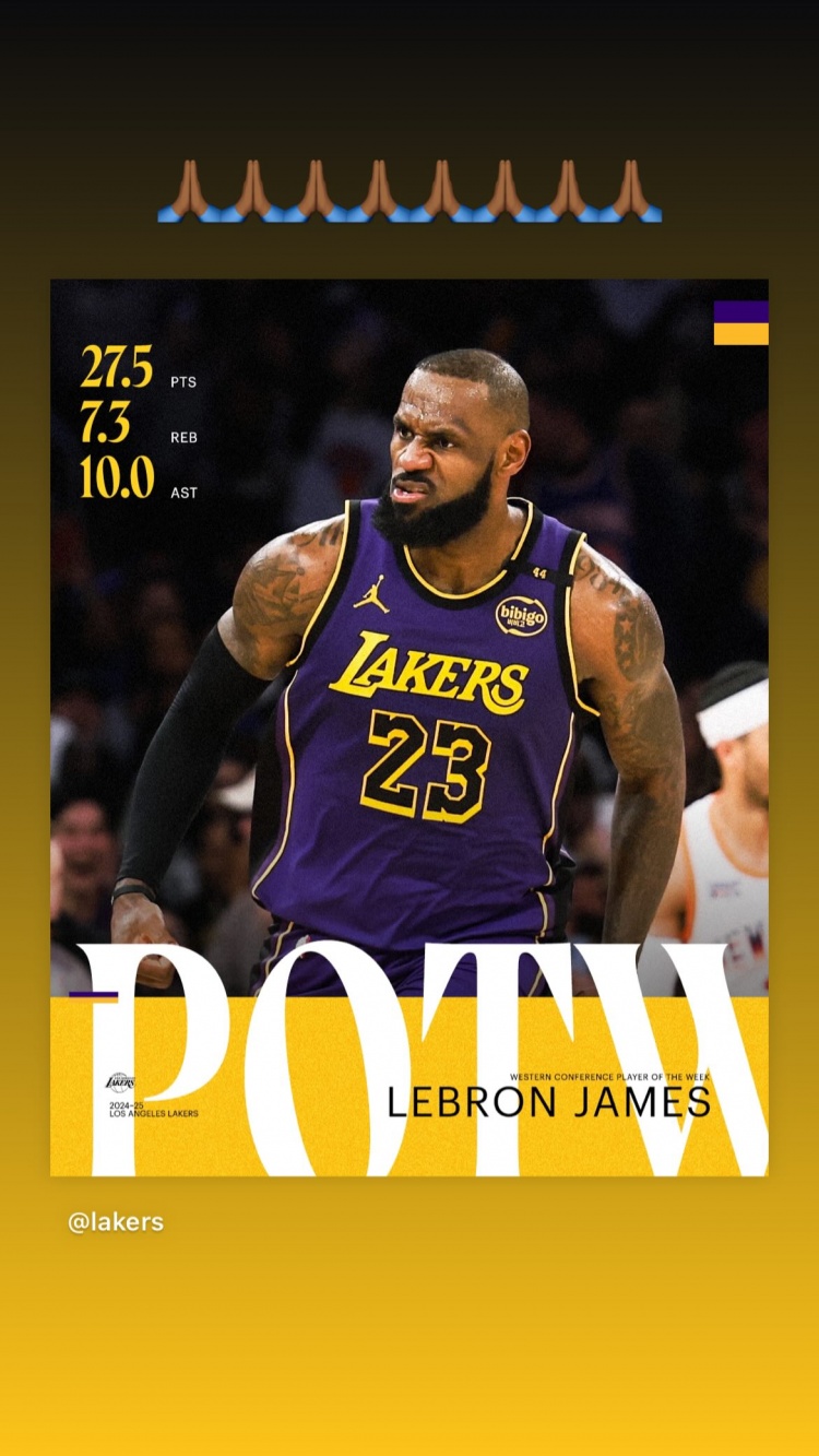 發(fā)布時間:2025年02月04日 07:52點擊:欄目:籃球新聞 2月4日訊 今日NBA官方公布了本賽季第15周周最佳球員,詹姆斯當選西部周最佳。這樣一來,詹姆斯超越邁克爾-喬丹,成為NBA歷史獲得周最佳年紀最大的球員!詹姆斯更新IG動態(tài)轉(zhuǎn)發(fā)自己的周最佳海報: 除特別注明外,本站所有內(nèi)容均為九球直播整理排版,轉(zhuǎn)載請注明出處:史上最老周最佳!詹姆斯轉(zhuǎn)發(fā)自己的周最佳海報: 本文標簽: nba 籃球 西部 湖人 詹姆斯