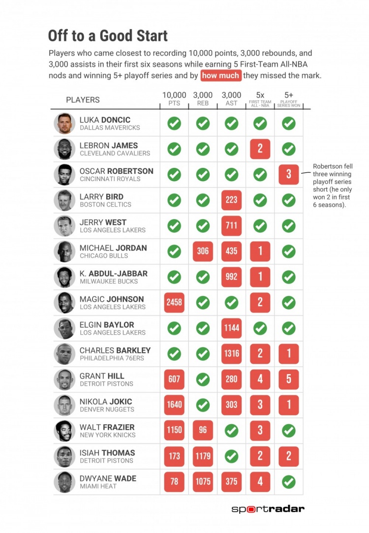 發(fā)布時間:2025年02月04日 10:52點擊:欄目:籃球新聞 2月4日訊 今天,數(shù)據(jù)專家Todd Whitehead曬出了東契奇的一項數(shù)據(jù)紀錄。在生涯前6個賽季中,東契奇至少得到10000分、3000籃板、3000助攻,且5次入選年度最佳陣容一陣+贏下至少5個季后賽系列賽,是歷史唯一。在曬出的圖片中,Todd Whitehead標出了接近這一點但沒達到的球員,比如詹姆斯其他條件都夠,但一陣數(shù)差2次。 除特別注明外,本站所有內(nèi)容均為九球直播整理排版,轉(zhuǎn)載請注明出處:077前6季10000分3000板3000助&5次一陣且贏5+次系列賽 是歷史唯一 本文標簽: nba 籃球 湖人 東契奇