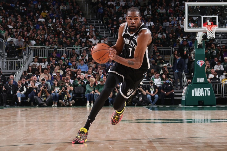 杜蘭特效力籃網(wǎng)期間最令人難忘的時刻,甚至可以說是他職業(yè)生涯中最具標(biāo)志性的時刻,就是2021年東部半決賽第七場最后時刻,他的腳尖踩在三分線上的轉(zhuǎn)身跳投。這記投籃本可以成為絕殺,但最終僅將比賽拖入加時。最終,雄鹿(那年的總冠軍)獲勝,籃網(wǎng)被淘汰,杜蘭特在哈登(腿筋受傷)和歐文(腳踝受傷)缺陣的情況下砍下48分并出戰(zhàn)了53分鐘。
