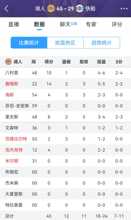 發(fā)布時(shí)間:2025年02月05日 11:56點(diǎn)擊:欄目:籃球新聞 除特別注明外,本站所有內(nèi)容均為九球直播整理排版,轉(zhuǎn)載請注明出處:吃餃子了!湖人首節(jié)24中18&三分11中7狂轟45分 本文標(biāo)簽: nba 籃球 湖人
