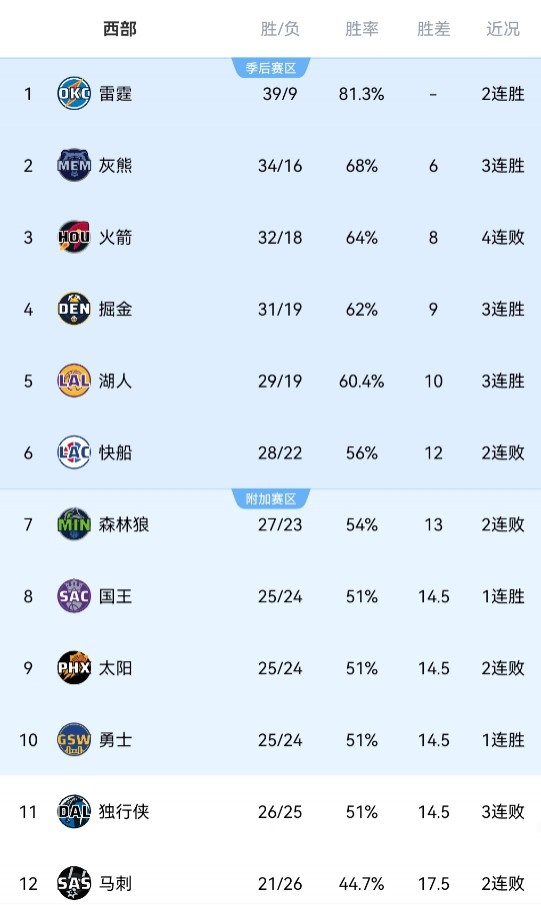 在本場比賽過后,獨行俠的戰(zhàn)績來到26勝25負,排在西部第十一,掉出了附加賽區(qū);勇士則由此前的第十一上升至第十。