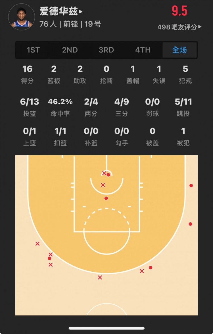 76人41號秀 阿德姆-博納 登場7.7分鐘