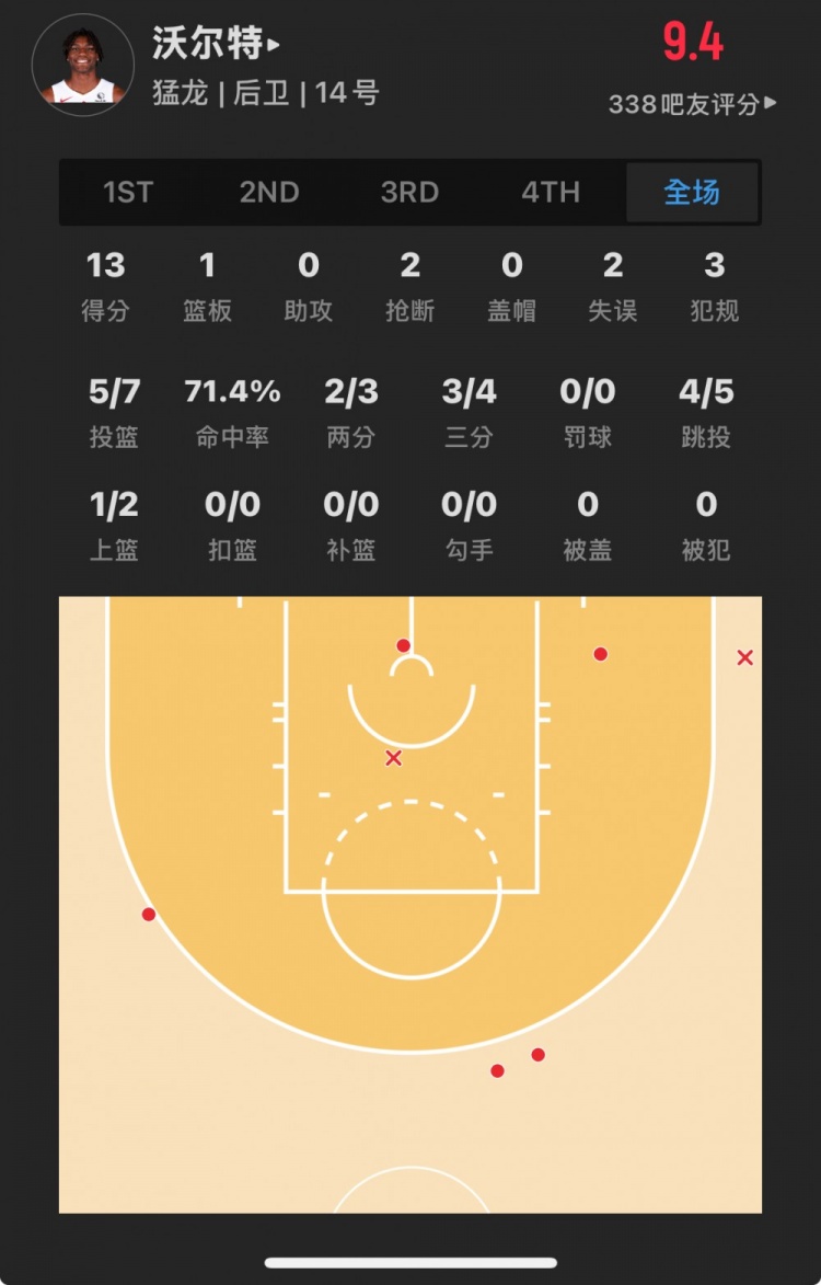 猛龍19號秀 賈科比-沃爾特 登場29.1分鐘