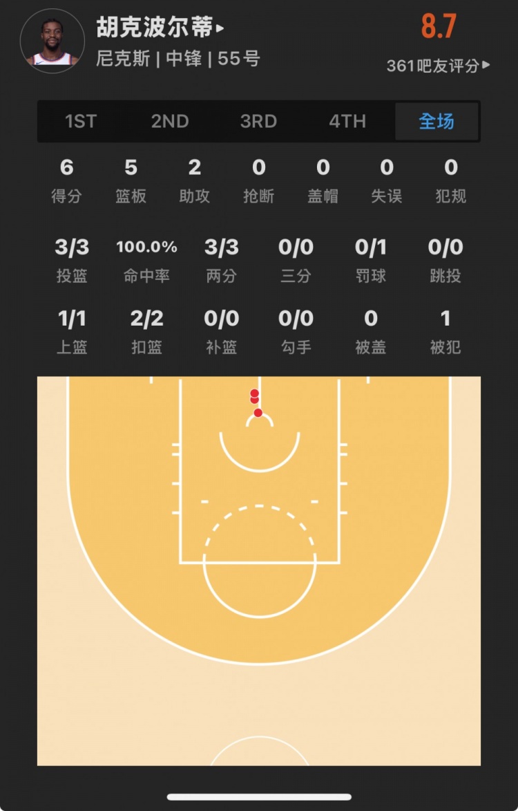 尼克斯58號秀 阿里埃爾-胡克波爾蒂 登場18.9分鐘