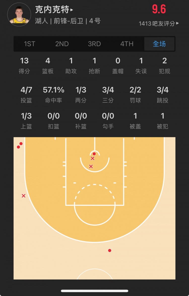 湖人17號(hào)秀 道爾頓-克內(nèi)克特 登場(chǎng)15.0分鐘