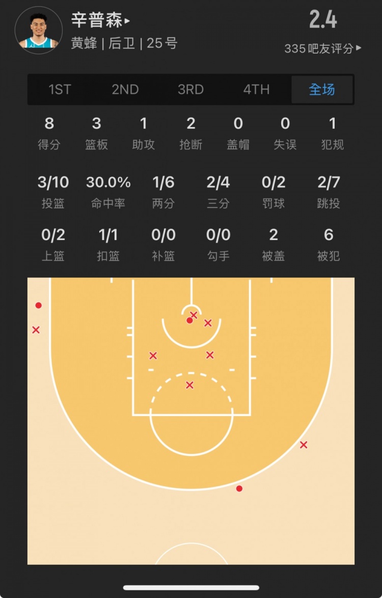 黃蜂42號(hào)秀 KJ-辛普森 登場(chǎng)25.6分鐘