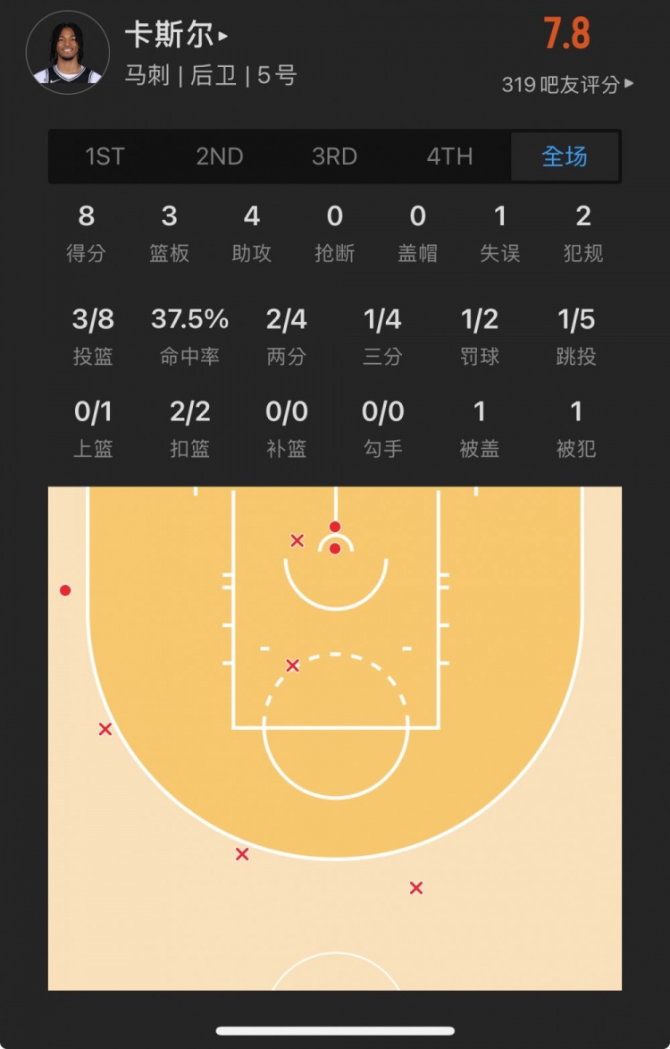 馬刺4號(hào)秀 斯蒂芬-卡斯?fàn)?登場(chǎng)24.5分鐘