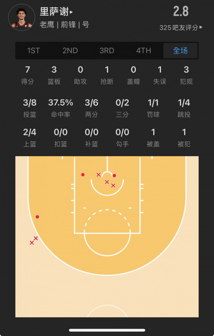 老鷹狀元秀 扎卡里-里薩謝 登場(chǎng)25.3分鐘